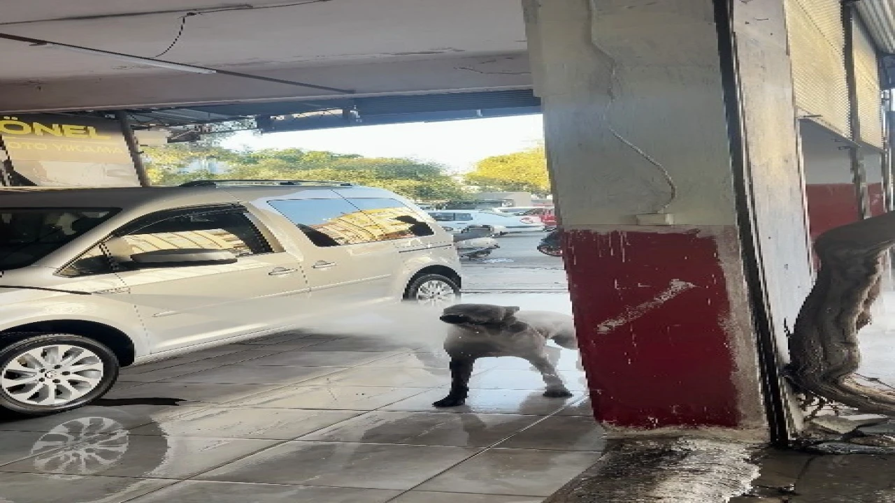 Antalya’da sıcaklardan bunalan bir köpek, sanayideki oto yıkamacıya gelip her iki saatte bir serinliyor. Çalışanların araçları yıkadıkları sırada köpeği de üzerine su tutarak serinlettiği anlar, izleyenleri tebessüm ettiriyor.