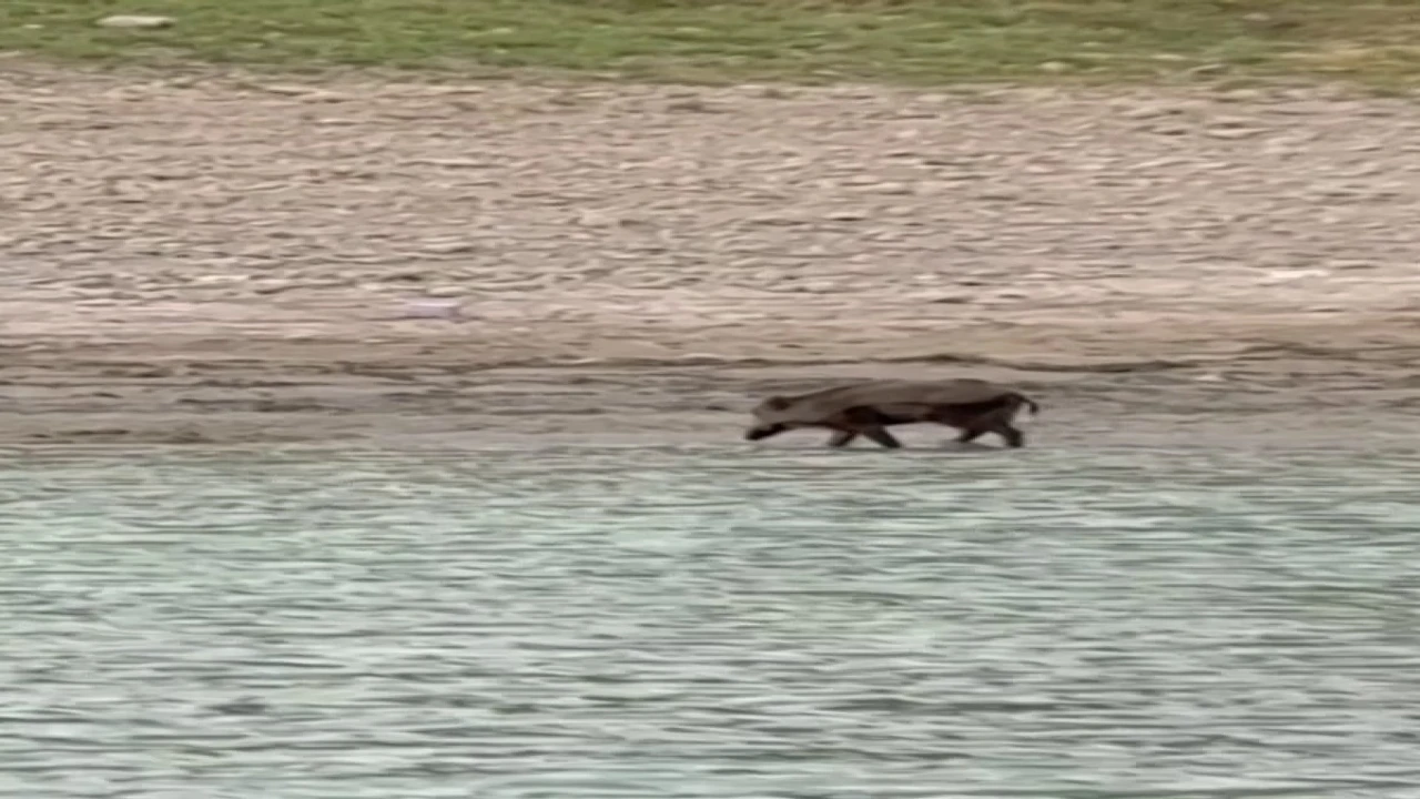 TÜRKİYE'NİN EN SICAK İLLERİNDEN ADANA'DA SICAKTAN BUNALAN BİR YABAN DOMUZU, SEYHAN BARAJ GÖLÜ'NDE SERİNLEDİ. O ANLAR CEP TELEFONU KAMERASINA SANİYE SANİYE YANSIDI.