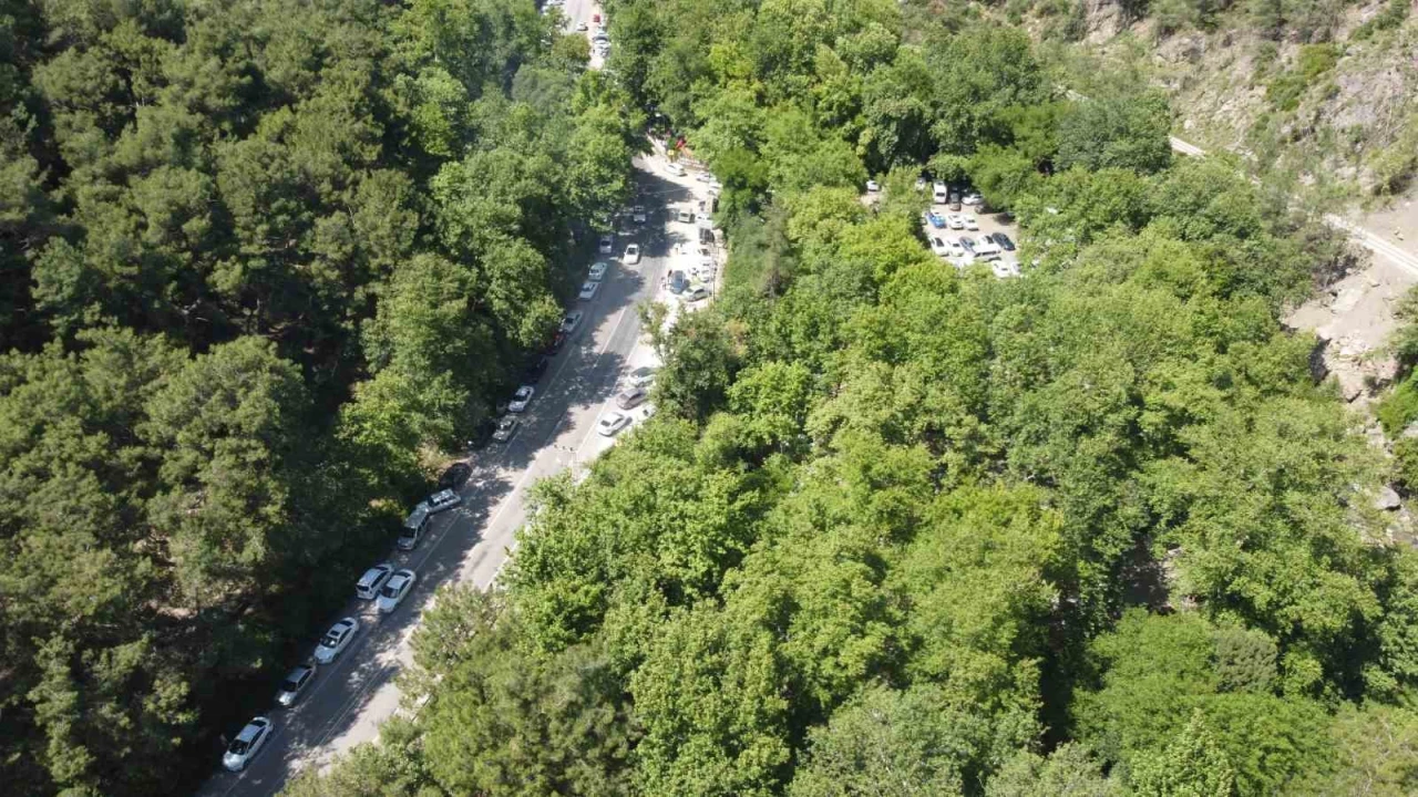 Türkiye’nin en sıcak illerinden Adana’da termometreler, 30 dereceyi gösterdi. Sıcaklıklar artınca Adana ve Kozan ilçesinde vatandaşlar tatil gününü fırsat bilerek doğaya akın etti. Kozan Belediyesi Dağılcak Tabiat Parkı’nda metrelerce araç kuyruğu oluştu. Asırlık çınar ağaçları arasından mangal dumanları yükselirken, akarsu da bölgeye gelenleri serinletti.