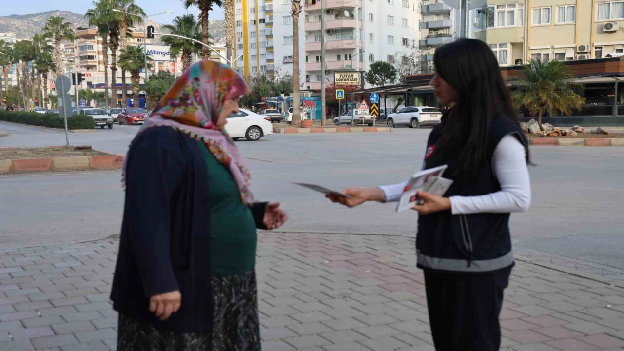 Daha sonra polis vatandaşlara "Kadına El Kalmaz" broşürü dağıttı.