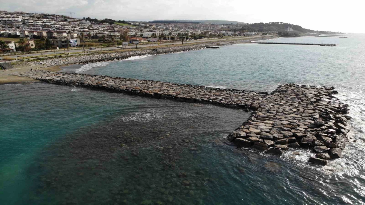Deniz seviyesinin yükseldiği bölge dronla görüntülendi.