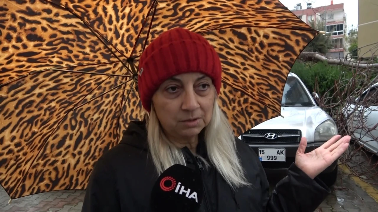 Aracı geçtiğimiz yıl aldığını belirten, aracının üzerine ağaç devrilen Aysun Günal isimli vatandaş, “Gece çok büyük bir fırtına vardı. Ben sürekli dua ediyordum ama aracımızın başına böyle bir şey geleceğini hiç düşünmemiştim. Balkonlardan korkuyordum. Sabah apartman görevlisi aradı, aracın üzerine ağaç devrilmiş diye. Şoktayım, sitenin ağacı devrilmiş. Bayağı bir zarar var, bütün yükü benim araba almış. Ağaç aracın üzerine gelmiş” dedi. Araçların üzerine devrilen ağaç Antalya Büyükşehir Belediyesi İtfaiye Daire Başkanlığı ekipleri tarafından kesilerek kaldırıldı.