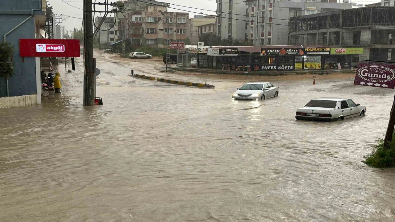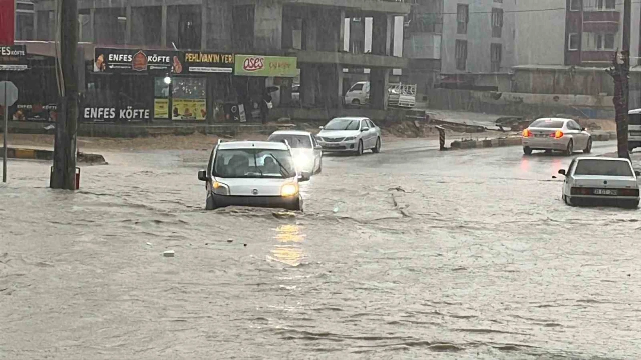Şiddetli yağış sele neden oldu, göle dönen yollarda araçlar mahsur kaldı