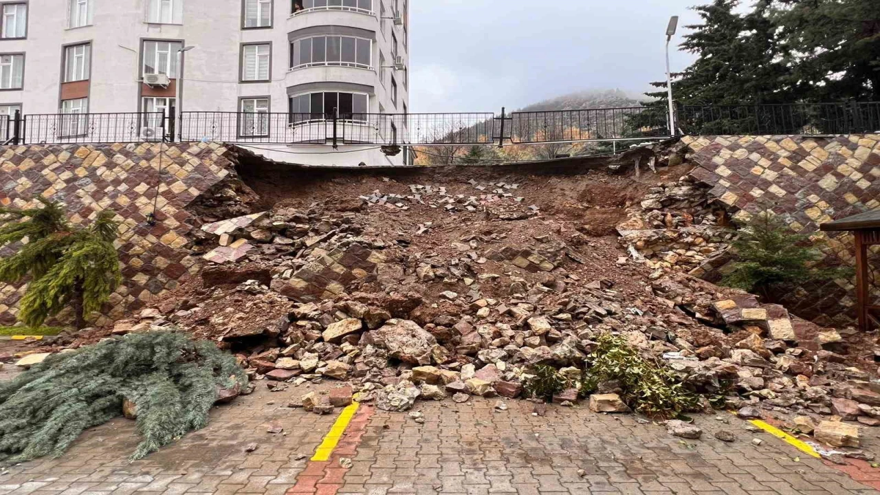 Kahramanmaraş’ta etkili olan sağanak sonrası bir sitenin istinat duvarı çöktü.