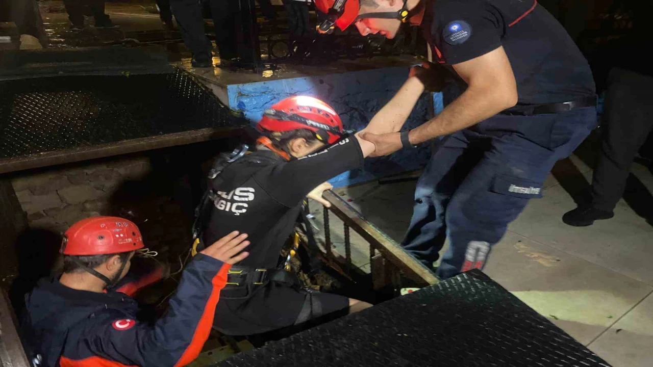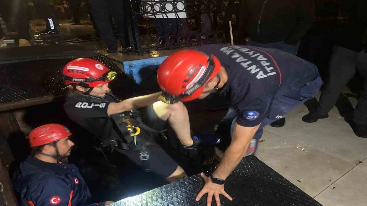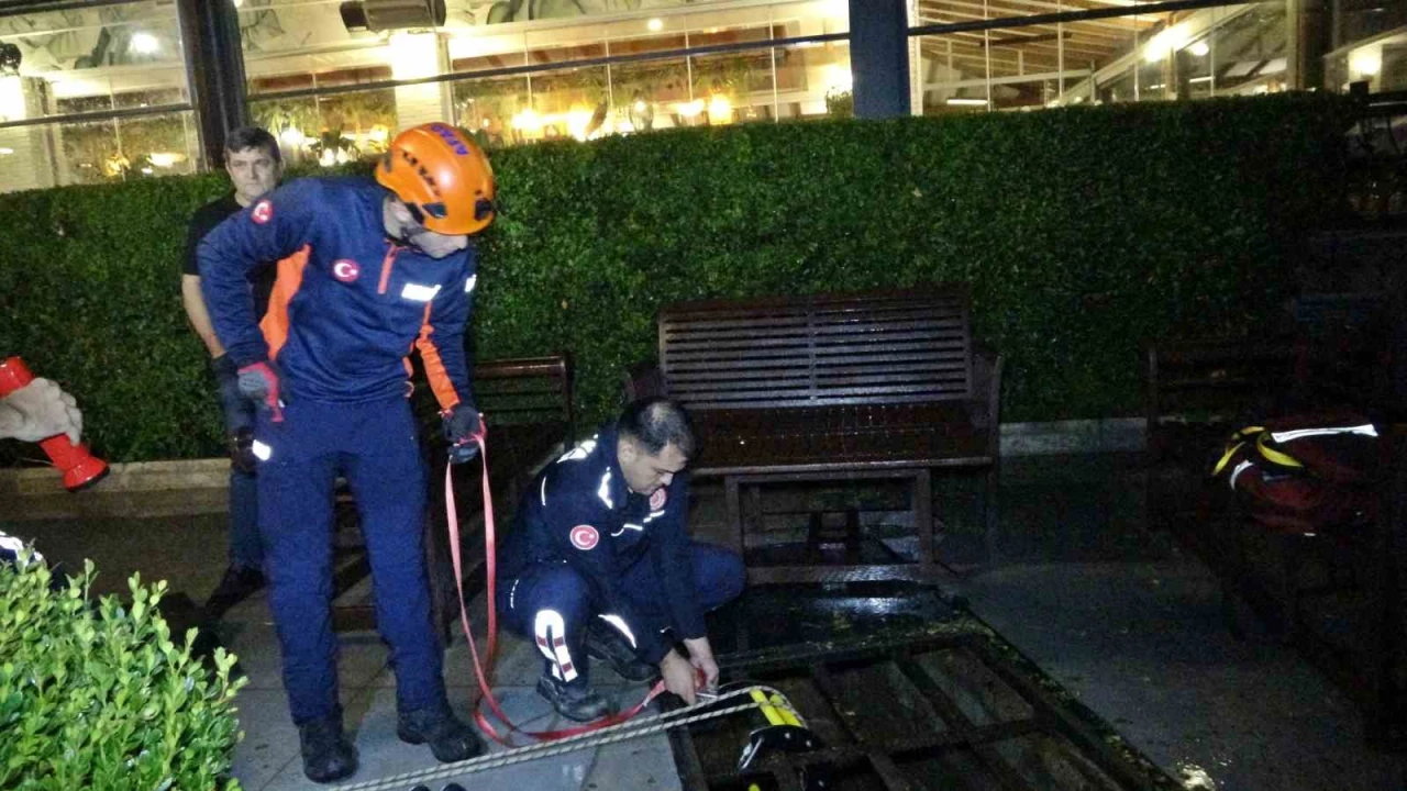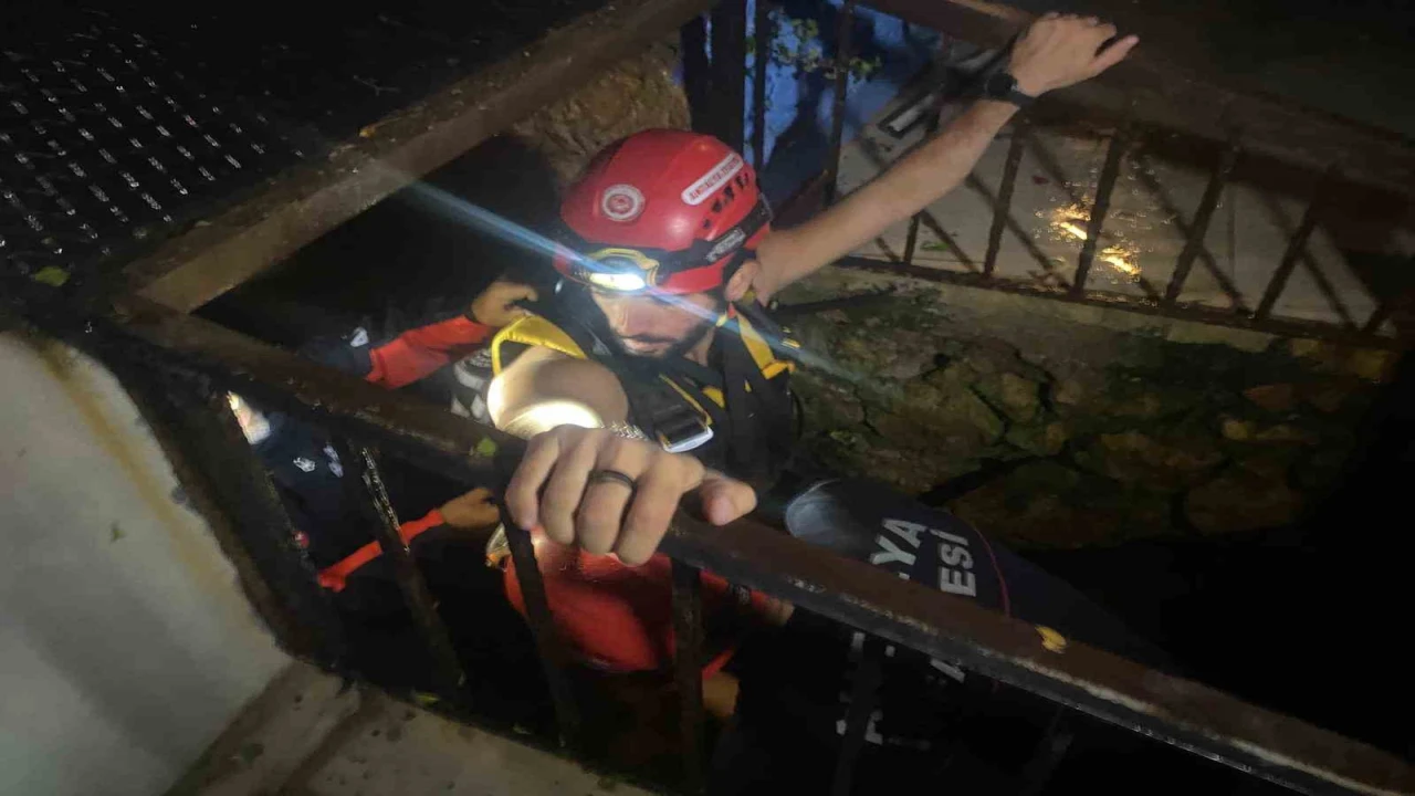 Restoranın bahçesindeki merdivenli geçitten kurtarıldı