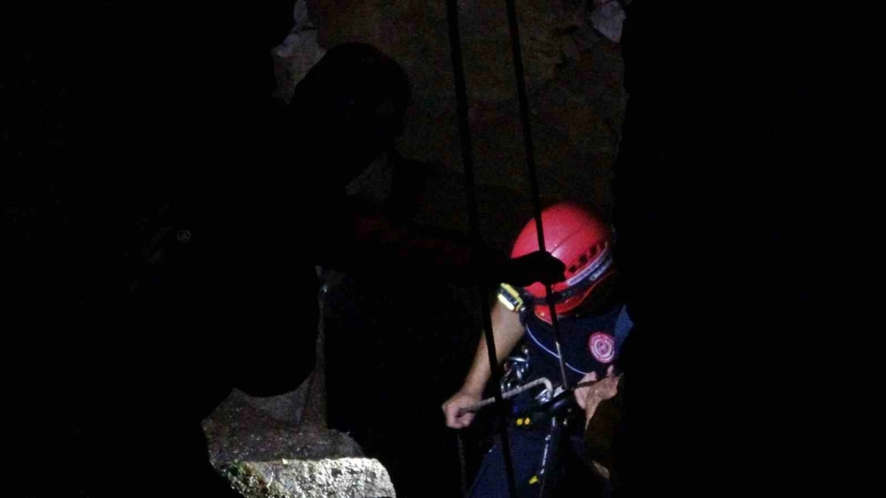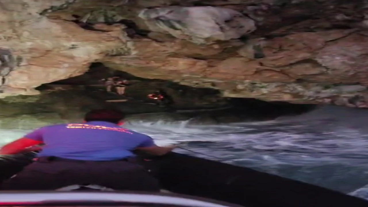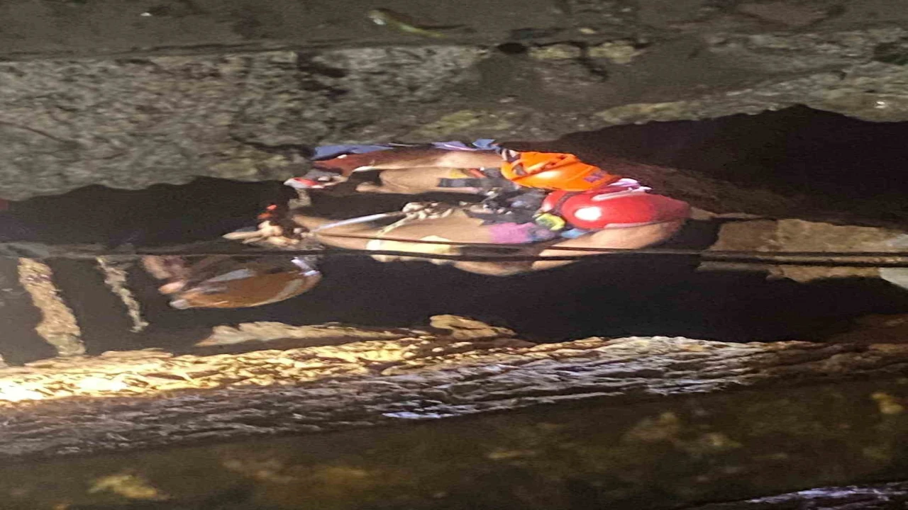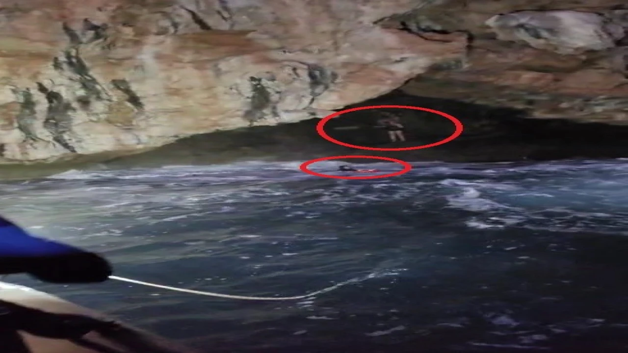Deniz Limanı Şube Müdürlüğüne Bağlı Gemi Adamları ekipleri, hava koşullarından dolayı mağaraya botla giremese de, bir kurbağa adam dev dalgalar olmasına karşın yüzerek mağaraya ulaştı. Ardından mahsur kalan kadına üşümemesi için polis dalgıç kıyafeti veren kurbağa adam, kara ekipleri ulaşıncaya kadar da gençlere refakat etti.
