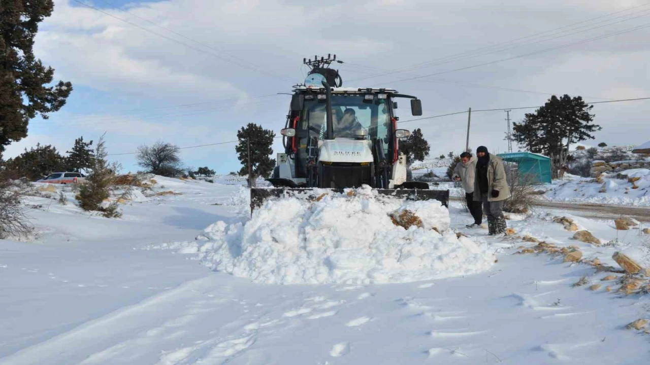 Silifke Belediyesi, kar yağışının etkili olduğu kırsal mahallelerde karla mücadeleye devam ediyor.