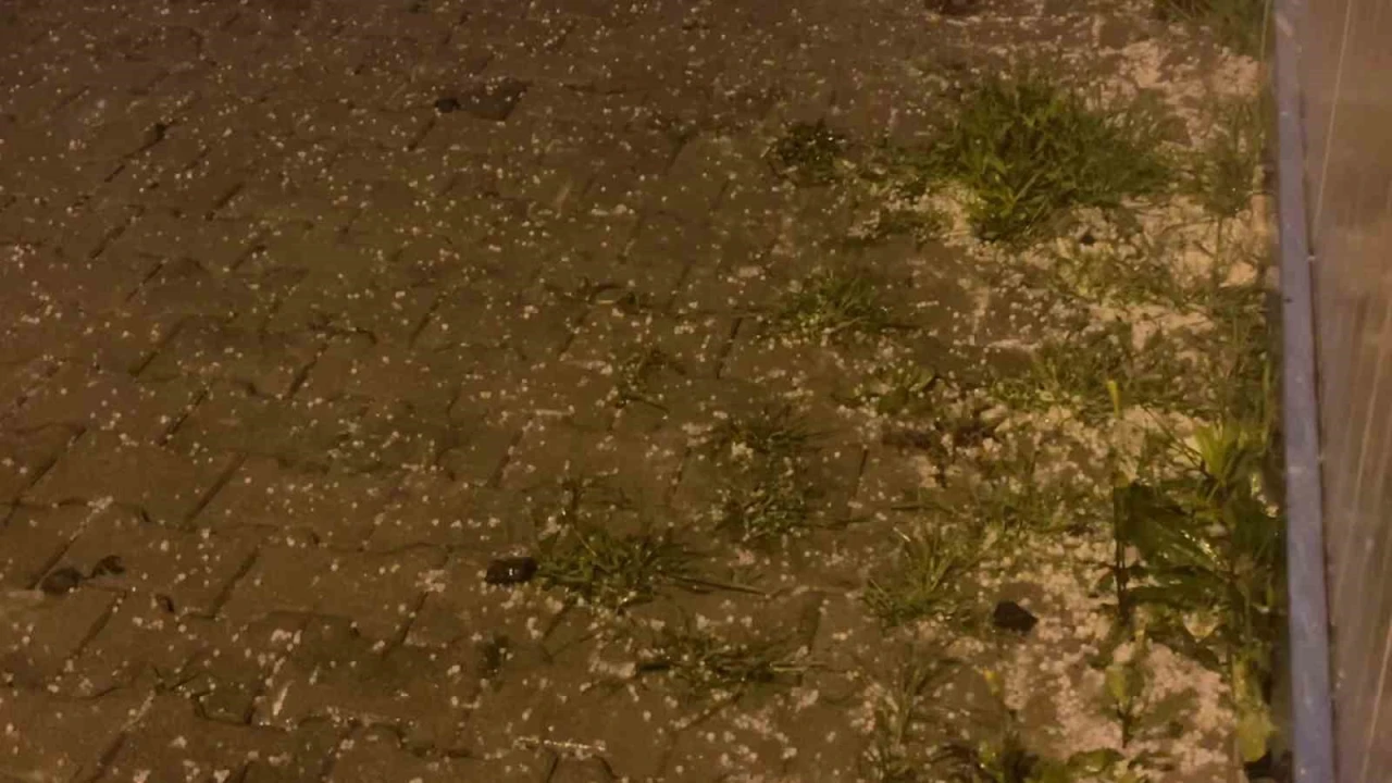 Hatay’da şiddetli yağışla birlikte dolu etkili olurken, havanın kararmasıyla birlikte şimşekler geceyi aydınlattı.