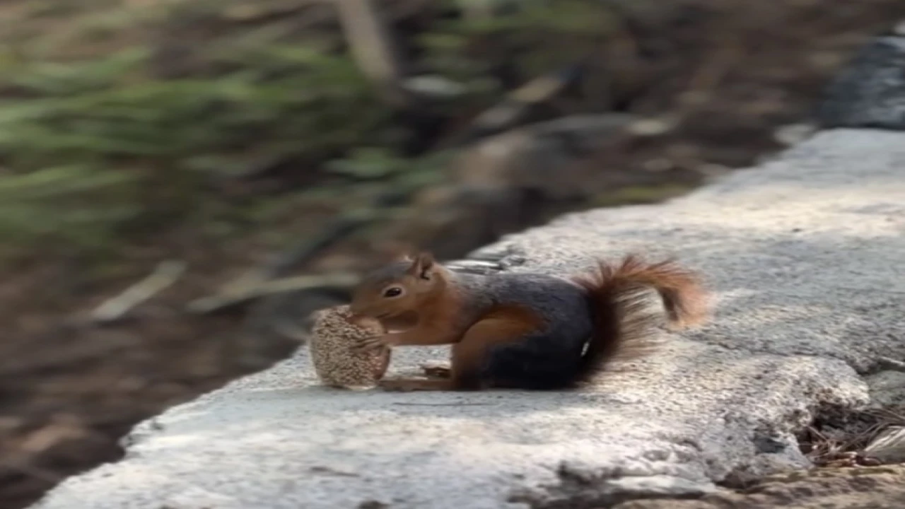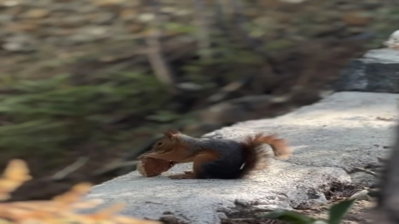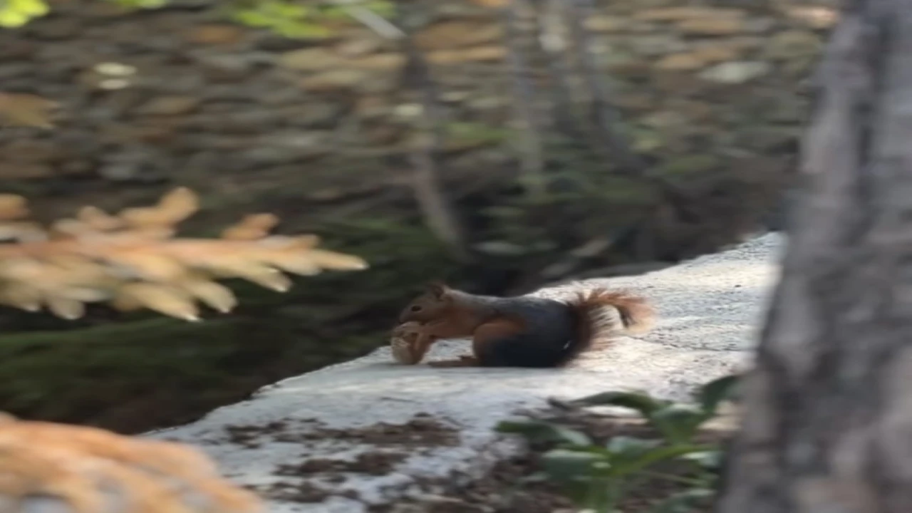 Osmaniye’nin Zorkun Yaylası’nda sincabın bayram kömbesi yerken vatandaşların cep telefonu kamerasıyla çekilen görüntüsü gülümsetti.