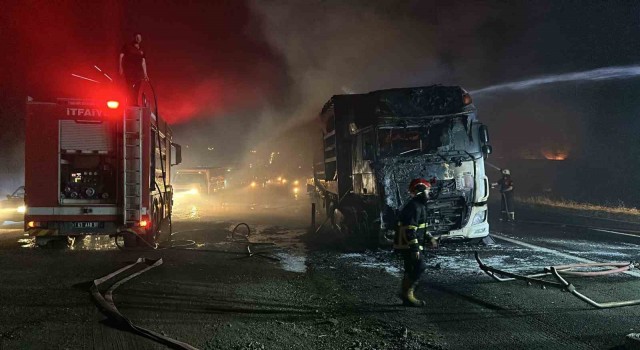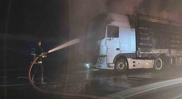 Olay yerine çağrılan itfaiye ekipleri yangına müdahale ederken, tır kullanılamaz hale geldi. Olayla ilgili inceleme başlatıldı.