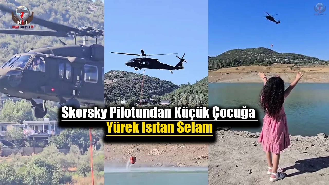 Hatay’da sınır hattında devam eden orman yangınına müdahale için barajdan su alan skorsky pilotunun kendini selamlayan kız çocuğunu, selamladığı anlar yürekleri ısıttı.