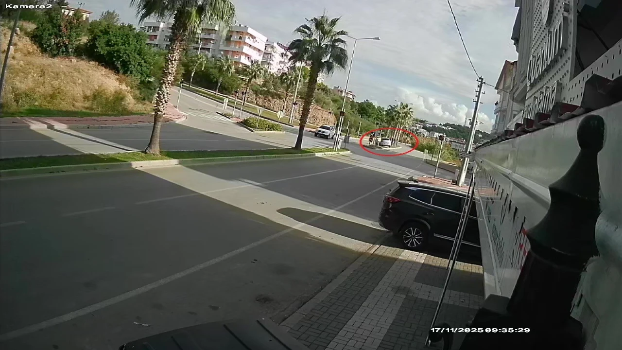 Kaza; Aydınevler Mahallesi Hasan Ali Yücel Caddesi’nde meydana geldi. Edinilen bilgiye göre, Manavgat Anaokulu istikametinden çevreyolu istikametine gitmekte olan Reyhan Ö.’ün kullandığı 61 YL 560 plakalı otomobil kavşakta ’U’ dönüşü yaptığı sırada araç sürücüsü panikleyerek gaza bastı. Direksiyon hakimiyetini kaybeden araç sürücüsü kadın refüjdeki palmiyeye çarptı. Otomobilin çarptığı palmiye kökünden kırılarak yola devrilirken araçtan burnu bile kanamadan inen otomobil sürücüsü, uzun süredir araç kullanmadığını ve pratik yaparken kaza yaptığını belirtti. Kaza anı ise güvenlik kamerasın saniye saniyesine yansıdı. Görüntülerde, otomobilin ’U’ dönüşü yaptığı sırada geniş manevra yaptığı, ardından sürücünün aniden gaza basınca direksiyon hakimiyetini kaybederek refüje çıkarak palmiyeye çarptığı görüldü.