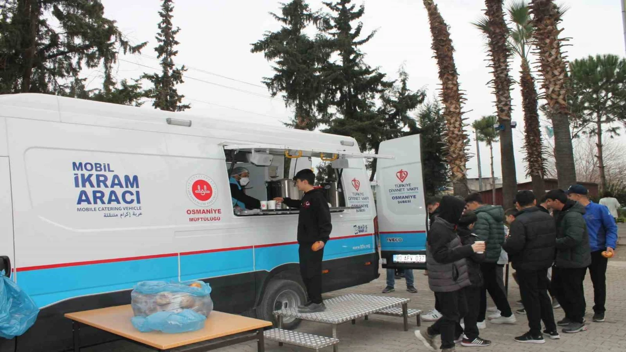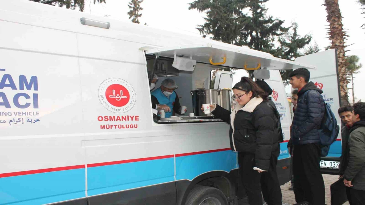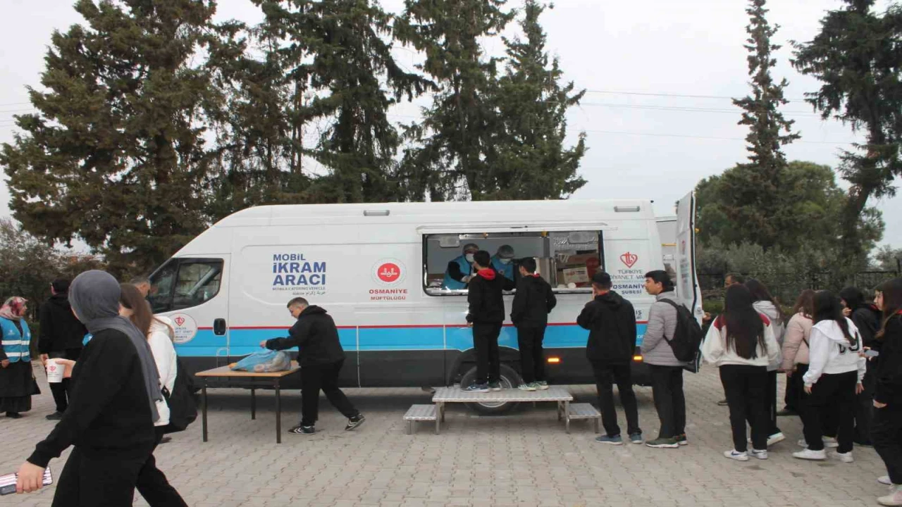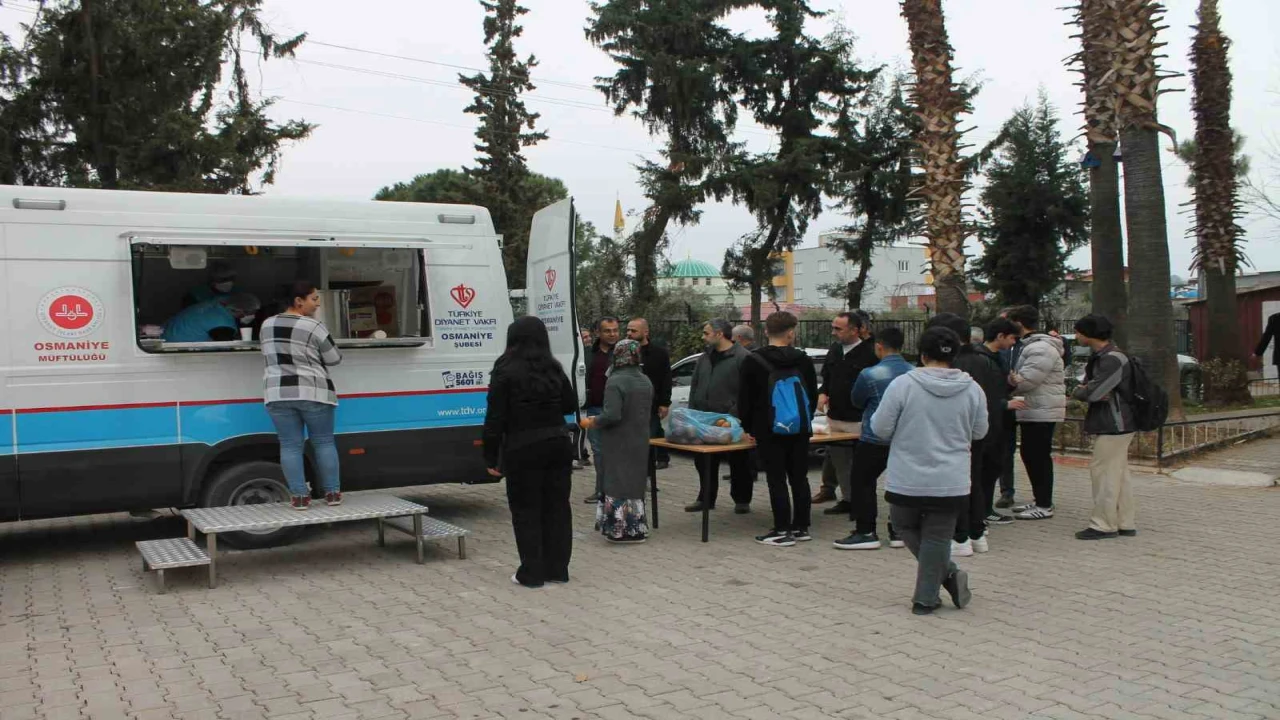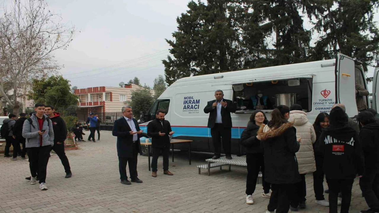 Osmaniye İl Müftülüğü ve Türkiye Diyanet Vakfı Osmaniye Şubesi, soğuk kış günlerinde öğrencilerin içini ısıtacak anlamlı bir etkinlik düzenledi. Daha önce birçok okulun önünde öğrencilere sıcak çorba ikramında bulunan İl Müftülüğü, 80. Yıl Cumhuriyet Anadolu Lisesi önünde, Türkiye Diyanet Vakfı Mobil İkram Aracı ile öğrencilere sıcak çorba ikramı yaptı. Çorba dağıtımına yoğun ilgi gösteren öğrenciler, hem kış soğuğunda içlerini ısıttı hem de paylaşmanın huzurunu yaşadı. Osmaniye İl Müftülüğü yetkilileri, gençlerin yanında olmanın ve onları desteklemenin önemine vurgu yaparak, "Öğrencilerimiz bizim geleceğimiz. Onların eğitim hayatına küçük de olsa bir katkıda bulunmak, bu soğuk günlerde içlerini ısıtmak bizleri de mutlu ediyor" diye konuştular. İl Müftülüğü yetkilileri 21 Şubat Cuma günü ise Mehmet Akif Ersoy Mesleki ve Teknik Anadolu Lisesinde Mobil İkram aracı ile çorba ikram olacağını belirttiler.
