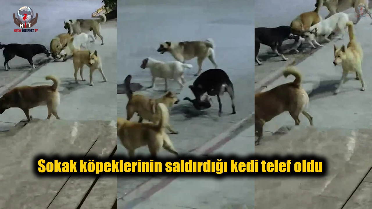HATAY’IN İSKENDERUN İLÇESİNDE SAHİPSİZ KÖPEKLERİN BİR KEDİYE SALDIRMA ANI ÇEVREDEN GEÇEN VATANDAŞIN CEP TELEFONU KAMERASINA YANSIDI.