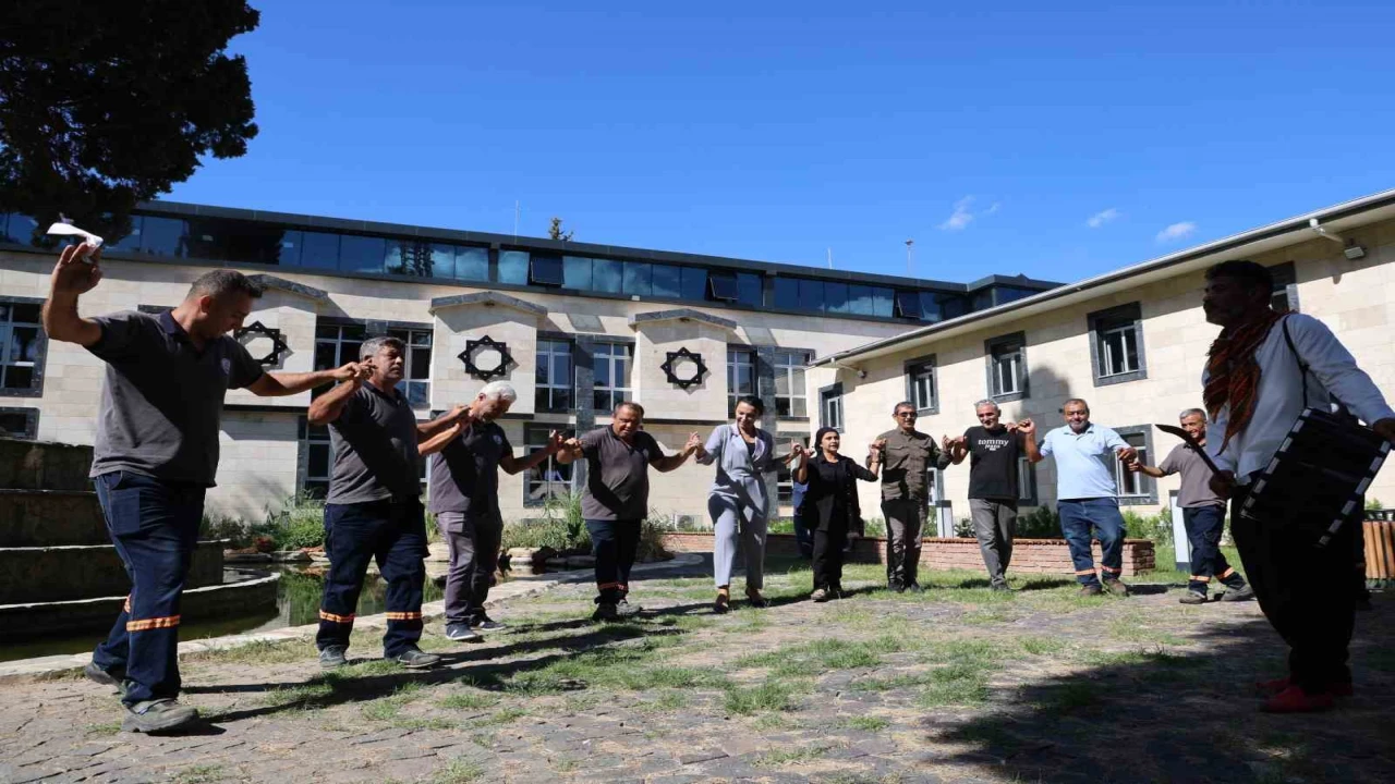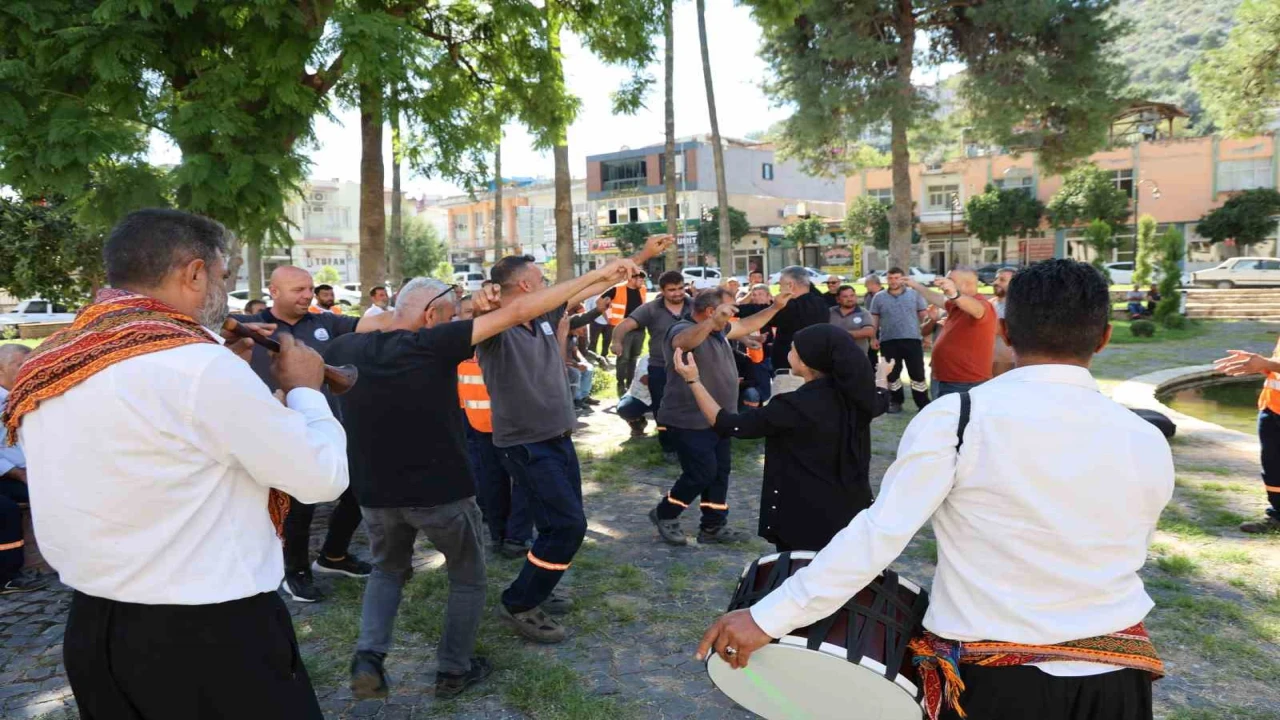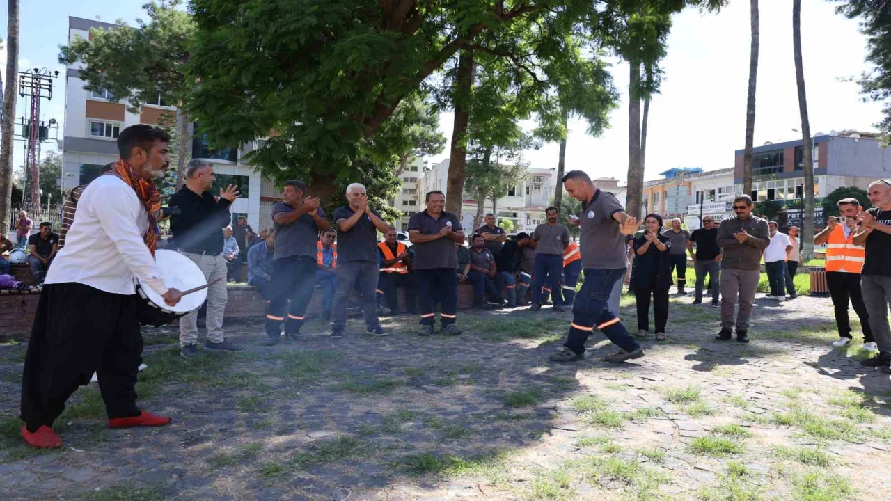Başkan Atlı, temizlik biriminden sorumlu Başkan Yardımcısı Alev Ataş ile birlikte belediye çalışanlarının neşesine ortak olurken davul zurna eşliğinde süpürgeleriyle dans eden işçilerin mutluluğu, izleyenlerin yüzüne yansıdı.