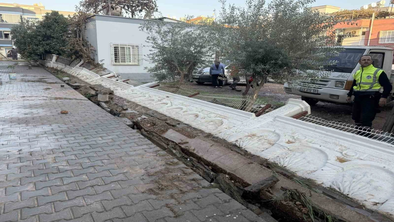 Mersin’in Tarsus ilçesinde su borusu patlaması sonucu bazı sitelerin bahçesi suya gömüldü. Sitelerden birinin bahçe duvarı yıkılırken, bir araç da zarar gördü.