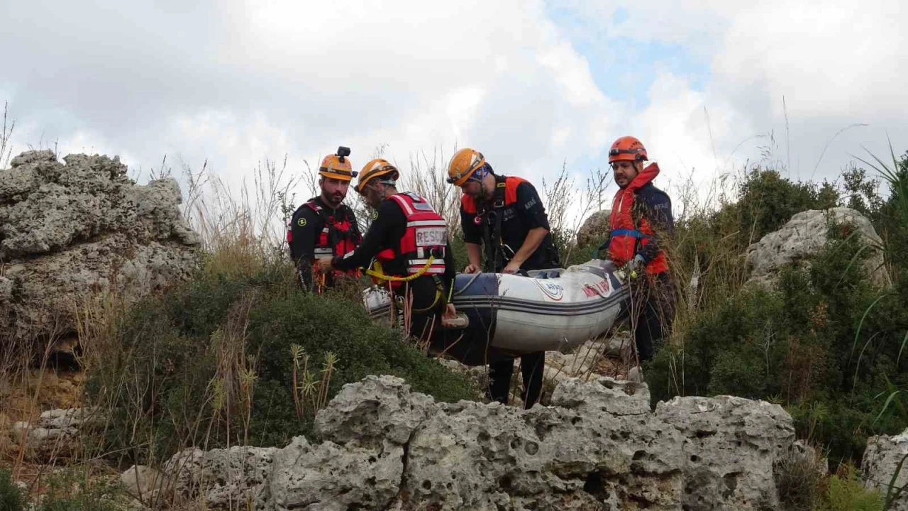 Karadan ulaşımın mümkün olmadığı noktaya AFAD ekipleri yaklaşık 1 kilometre ileride bulunan alandan şişme botu taşıyarak ulaşabildi. Botun suya indirilmesinin ardından kimliği belirsiz şahsın cansız bedeni ekipler tarafından botla uygun bir noktadan karaya çıkarıldı. 15 günden uzun süredir suda olduğu değerlendirilen kimliği belirsiz şahsın cesedi, üzerinde savcılık ve olay yeri inceleme ekipleri çalışma yaptı. Üzerinden sadece bir ulaşım kartı ve tespih çıkan şahsın kimliğinin belirlenmesi için olay yeri inceleme ekibi tarafından parmak izi alındı. Uzun süre suda kalması nedeniyle şiştiği ve çürümek üzere olduğu görülen şahsın cansız bedeni kesin ölüm nedeninin belirlenmesi için Antalya Adli Tıp Kurumu morguna kaldırıldı.