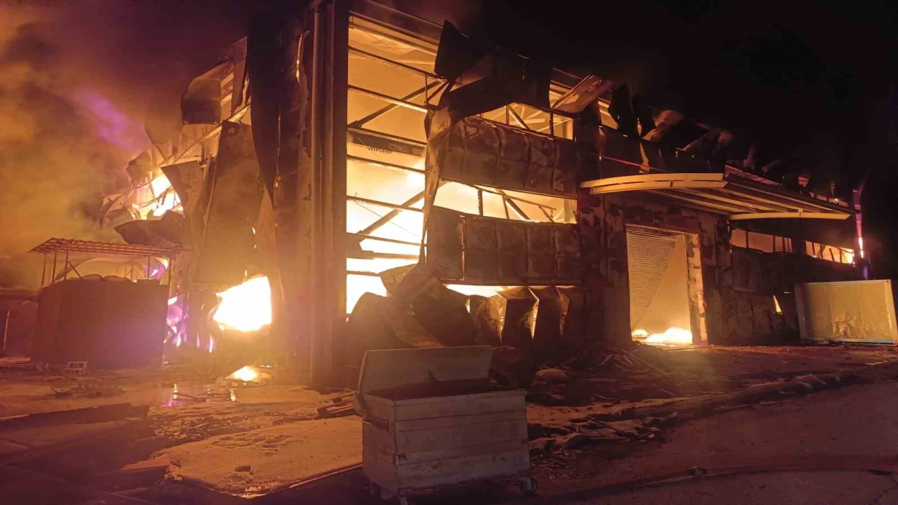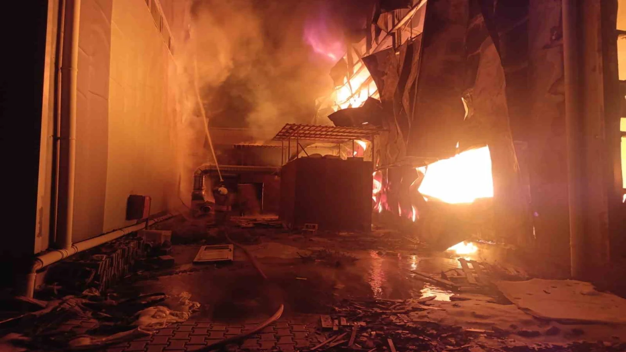 HATAY’DA SANAYİ SİTESİ İÇERİSİNDE BULUNAN SÜNGER DEPOSUNDA ÇIKAN YANGINDA, ALEVLER ÇEVREDEKİ İŞ YERLERİNE SIÇRAMADAN KONTROL ALTINA ALINDI.