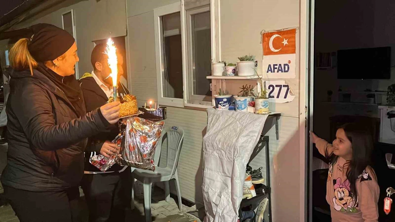 HATAY (İHA) - Hatay'da annesi ve kardeşleriyle konteynerde yaşayan Alya Parlak'ın 4'üncü yaş günü sürpriz doğum günüyle kutlandı.
