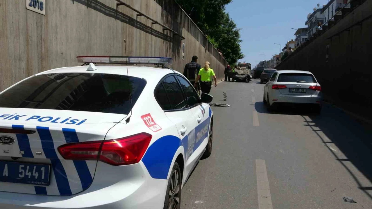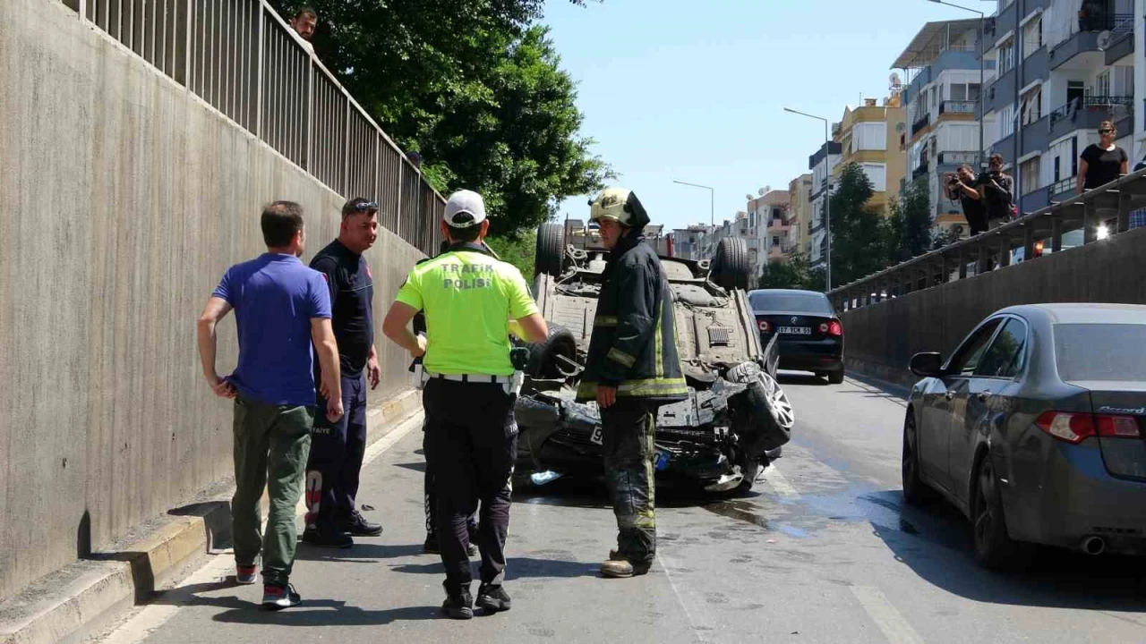 Muratpaşa ilçesi ile Kepez’i birbirine bağlayan Gıyaseddin Keyhüsrev alt geçidinde saat 15.00 sıralarında meydana gelen trafik kazasında Feyza K.’nın (25) kullandığı 07 P 6186 plakalı Peugeot marka araç, sürücüsünün direksiyon hakimiyetini kaybetmesi sonucu alt geçit duvarına çarptı. Çarpmanın etkisiyle kontrolden çıkarak savrulan araç takla attı. Kazayı görenlerin ihbarı ile olay yerine itfaiye, sağlık ve polis ekipleri sevk edildi. Ters dönük vaziyette yaklaşık 30 metre sürüklenen araç içerisinde bulunan sürücüsünün yardımına o sırada yoldan geçen diğer sürücüler ve vatandaşlar yetişti. Güçlükle bulunduğu yerden çıkartılan Feyza K. olay yerine gelen 112 Acil Sağlık ekibinin ilk müdahalesinin ardından kontrol amacıyla ambulansla hastaneye kaldırıldı. Takla atan ve ters dönmüş şekilde alt geçit çıkışında duran araç nedeniyle trafik uzun süre tek şeritten kontrollü şekilde sağlandı.