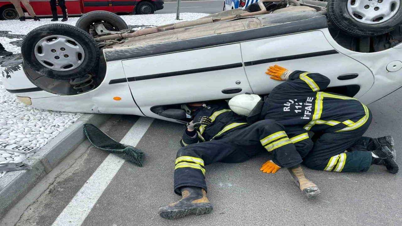 BURDUR'DA SÜRÜCÜSÜNÜN DİREKSİYON HAKİMİYETİNİ KAYBETMESİ SONUCU TAKLA ATTIĞI KAZADA OTOMOBİLDE BULUNAN 2 KİŞİ YARALANDI.