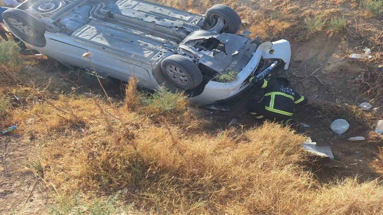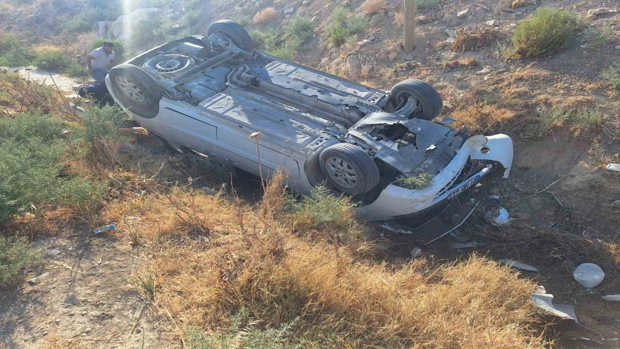 Seyir halindeki 21 HD 444 plakalı hafif ticari araç, sürücüsünün kontrolü kaybetmesiyle şarampole devrilerek ters döndü.