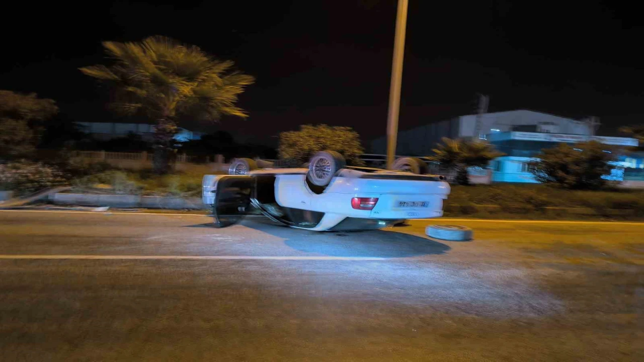 Hatay’da takla atarak ters dönen otomobilin sürücüsü yaralandı.