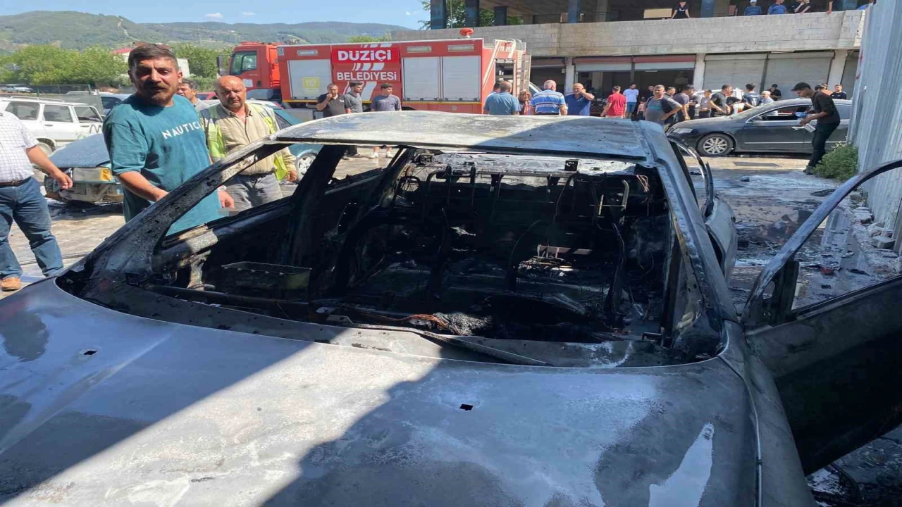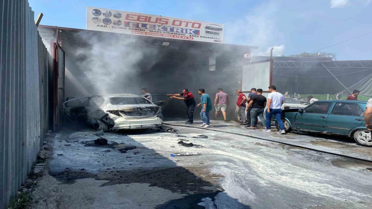 Osmaniye’nin Düziçi ilçesinde oto elektrik dükkanındaki otomobilde çıkan yangında iş yeri ve 2 araç zarar gördü.