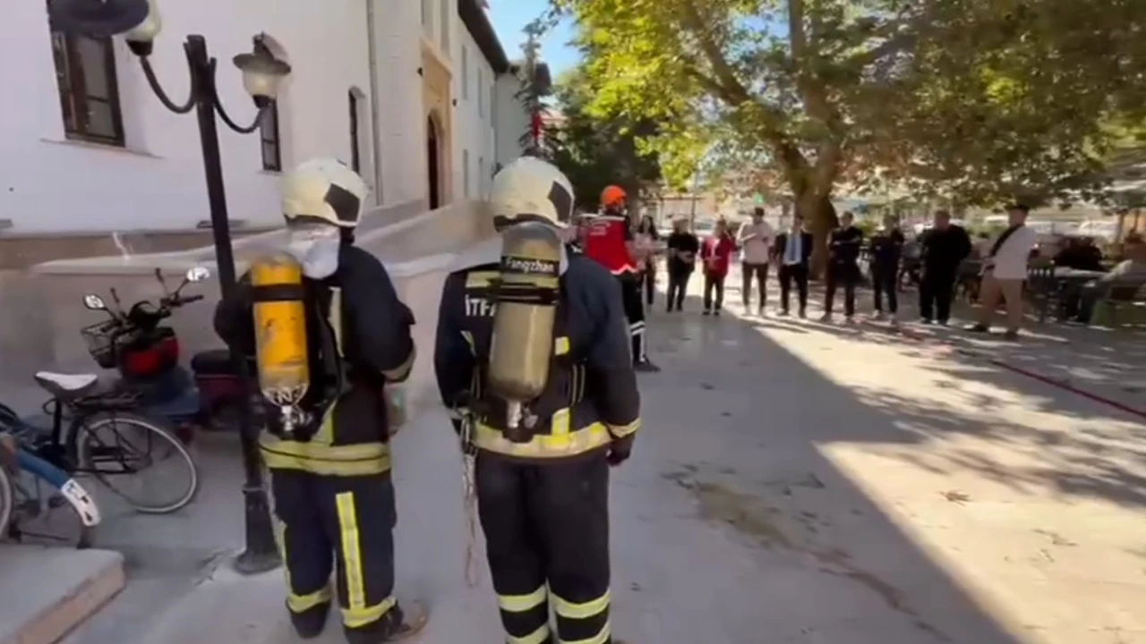 Isparta’nın Şarkikaraağaç ilçesinde tarihi Hükümet Konağı’nda gerçekleştirilen yangın tatbikatı gerçeğini aratmadı.