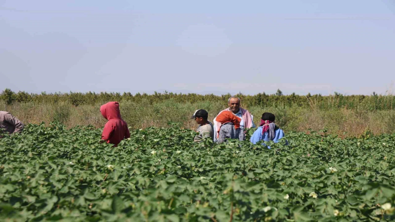 Tarım işçileri, 45 dereceyi aşan sıcakta 650 TL yevmiyeyle pamuk tarlasında zorlu mesai sürdürüyorlar