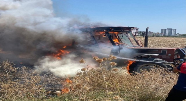 Edinilen bilgiye göre ilçeye bağlı Cengiz Topel mahallesi Dedekorkut caddesi üzerinde bir tarlada çalışan traktörde henüz belirlenemeyen bir nedenle yangın çıktı. Yangın bir anda büyüyerek tüm traktörü sardı. İhbar üzerine olay yerine itfaiye ekipleri seck edildi. Sürücüsünün yara almadığı olayda, yanan traktör itfaiyenin müdahalesiyle söndürüldü.