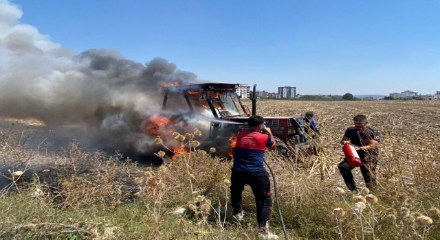 Osmaniye’nin Kadirli ilçesinde tarlada çalışan bir traktör aniden alev aldı, sürücünün yaralanmadığı olayda itfaiye ekipleri yangına müdahale ederek söndürdü.