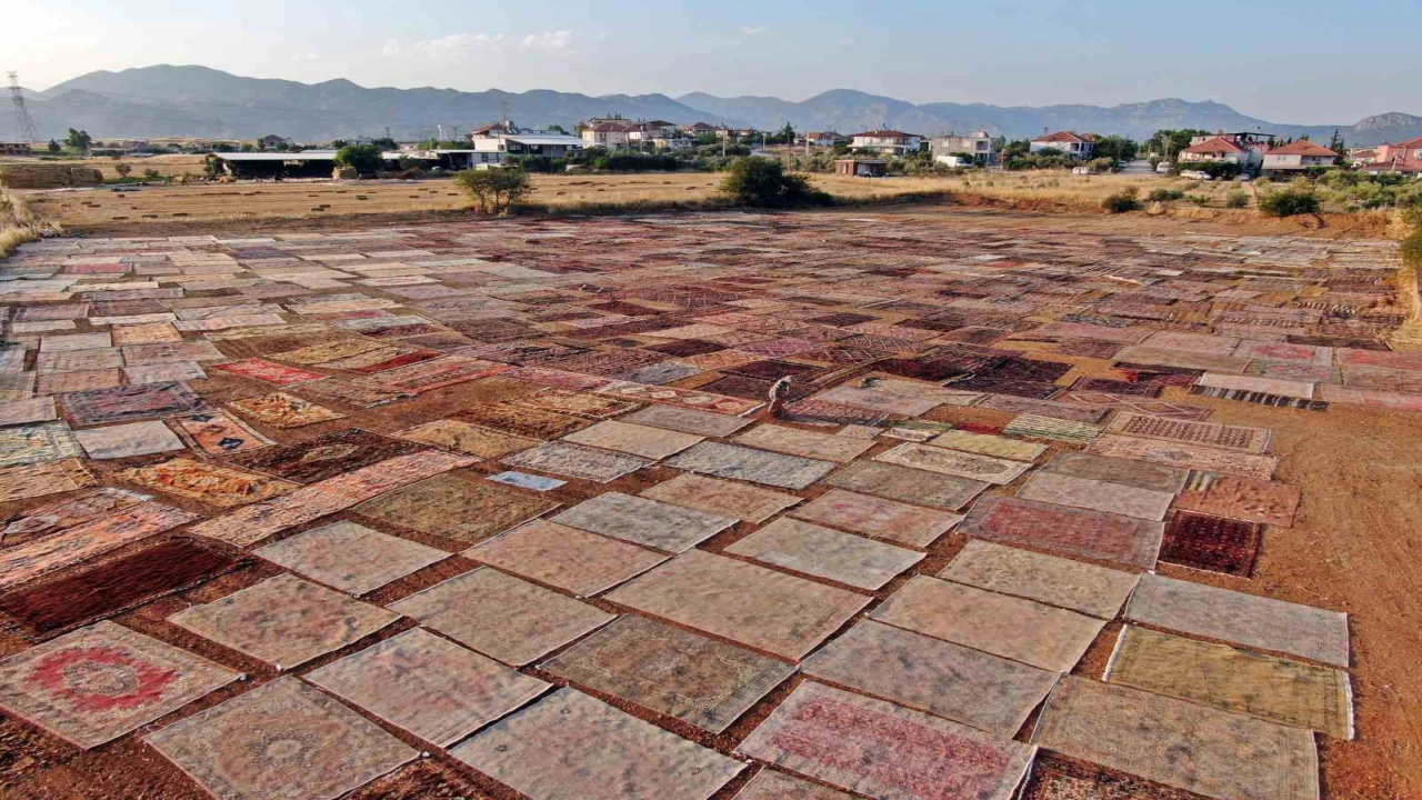 Türkiye’nin dört bir yanından ve yurt dışından gelen 15 bine yakın el dokuması halı ve kilim, restore edilip mikroplardan arındırılmak üzere Antalya’nın Döşemealtı ilçesindeki buğday tarlalarına seriliyor. Arazi sahipleri, tarlaya serilen serilen milyonluk halıları hırsızlık, yağmur ve yabani hayvanların zarar vermesine karşı korumak için sabahlara kadar nöbet tutuyor.