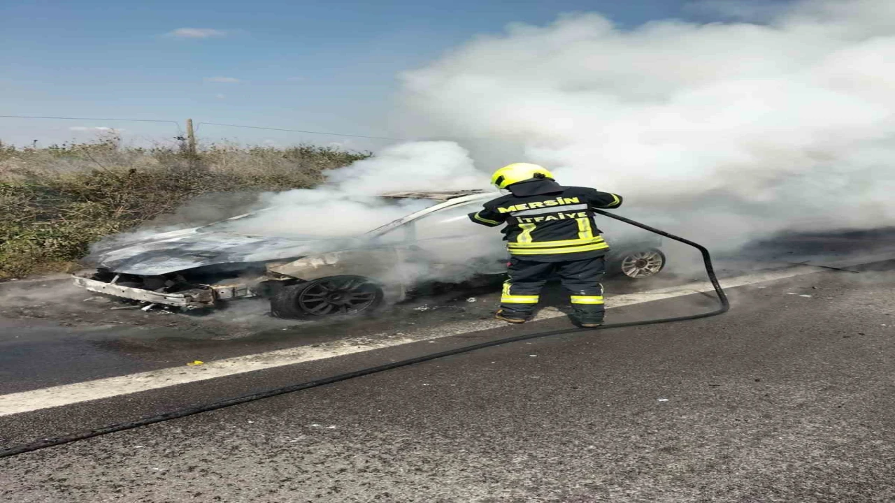 Mersin’de otoyolda seyir halindeki bir otomobil yandı.
