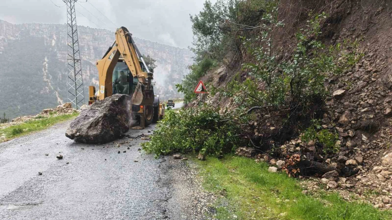 Öte yandan Yalamık Mahallesi’nde yağış nedeniyle yola düşen kaya parçası ekipler tarafından kısa sürede kaldırıldı. Yolun yeniden güvenli hale getirilmesiyle ulaşımda herhangi bir aksama yaşanmadı.
