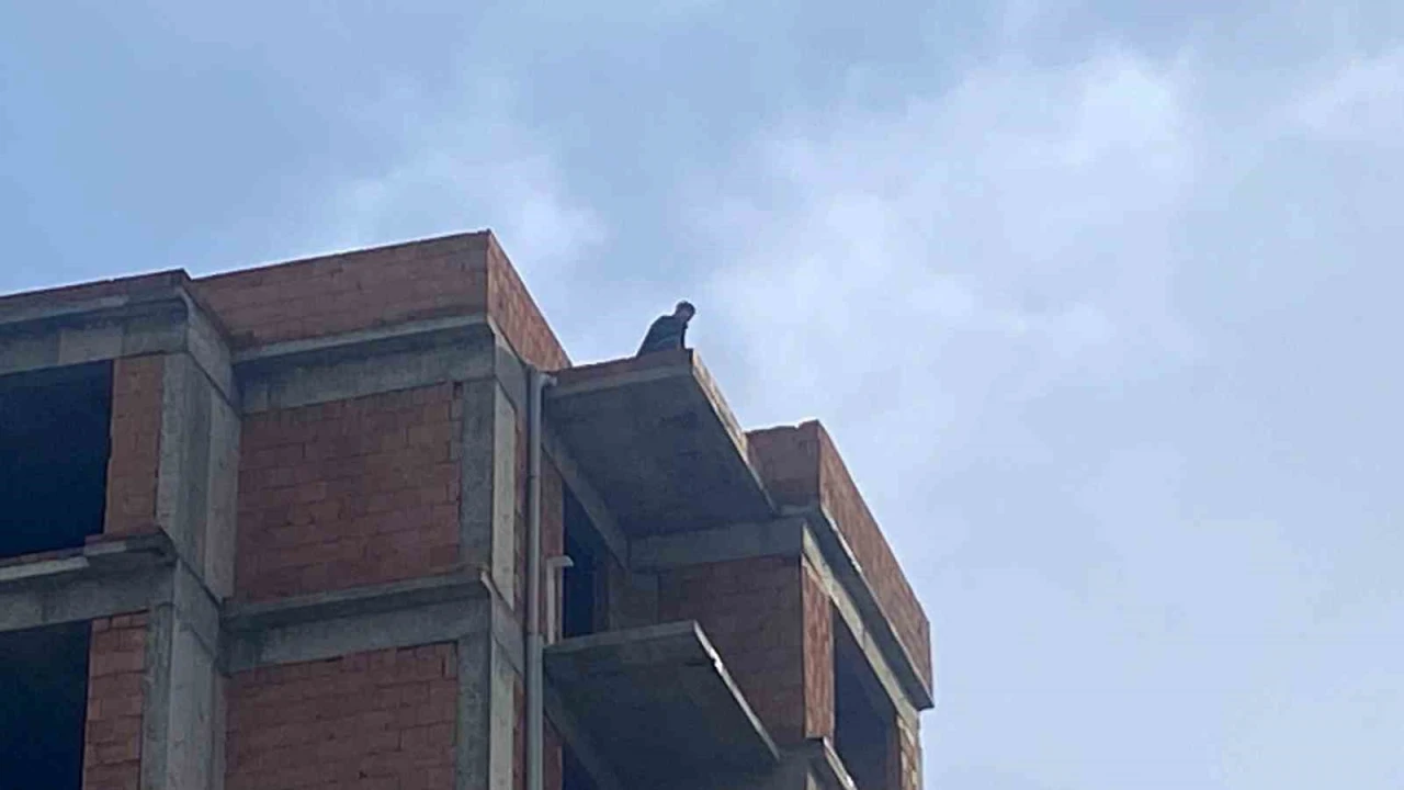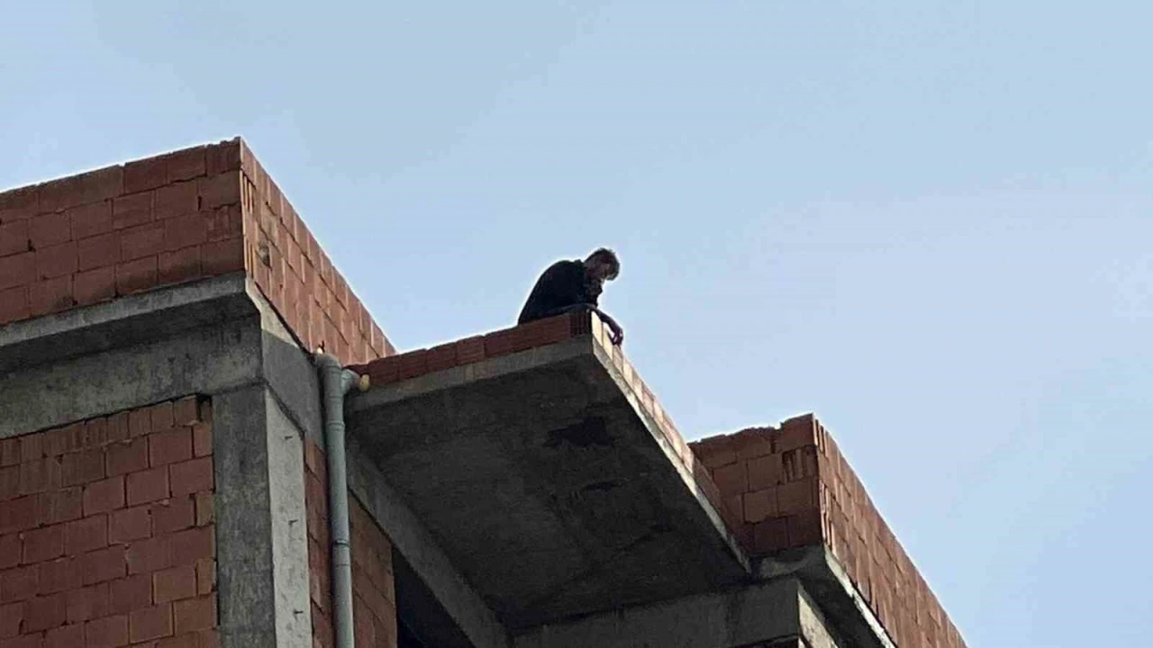 Antalya’nın Aksu ilçesinde tartıştığı eşinin telefonlarını açmamasına sinirlenen genç adam, 9 katlı bir inşaatın çatısına çıktı. Yaklaşık 2 saat boyunca çatının uç kısmında oturup elinde sürekli telefon bulunan adam, ikna edildikten sonra da indiği binadan telefonla konuşarak polis aracına bindi.