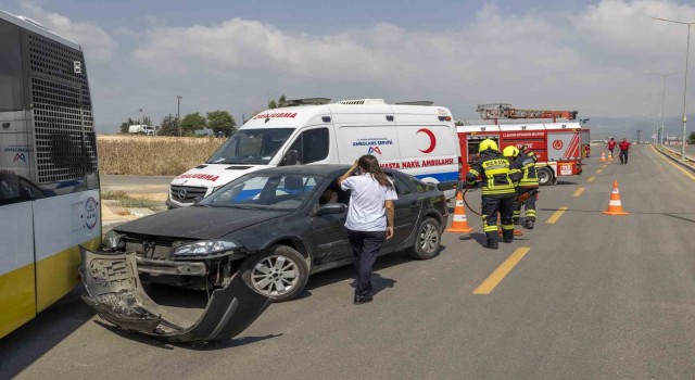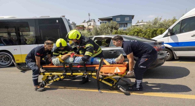 SENARYO GEREĞİ BELEDİYE OTOBÜSÜNE OTOMOBİLİN ÇARPMASI SONUCU MEYDANA GELEN KAZAYA MÜDAHALE EDİLDİ