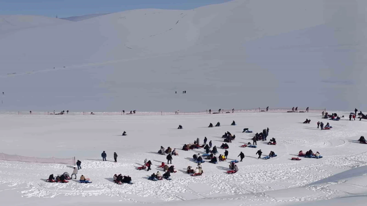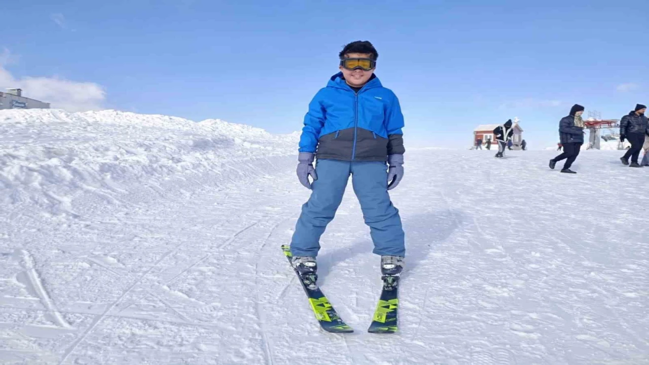 Kayak yapmaya gelenlerden Ahmet Kayra Durmuş, "Tatil çok iyi geçiyor. Babamla birlikte en büyük tepedeyiz şu an. Kaymak çok eğlenceli, herkes gelsin" dedi.