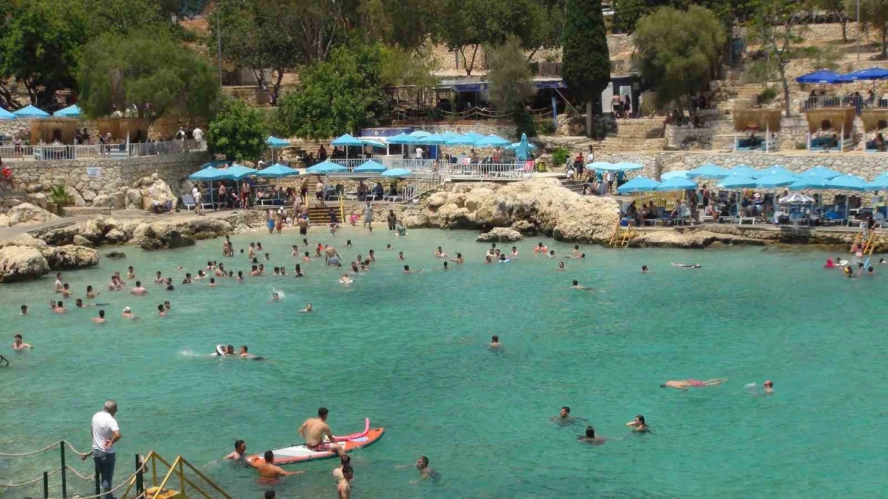 Türkiye’nin önemli turizm merkezlerinden Mersin’in Silifke ilçesinde, Toros Dağları’ndan gelen yer altı kaynak sularının Akdeniz’in tuzlu sularıyla karıştığı Yapraklı Koy, yerli ve yabancı tatilcileri kendine çekiyor.
