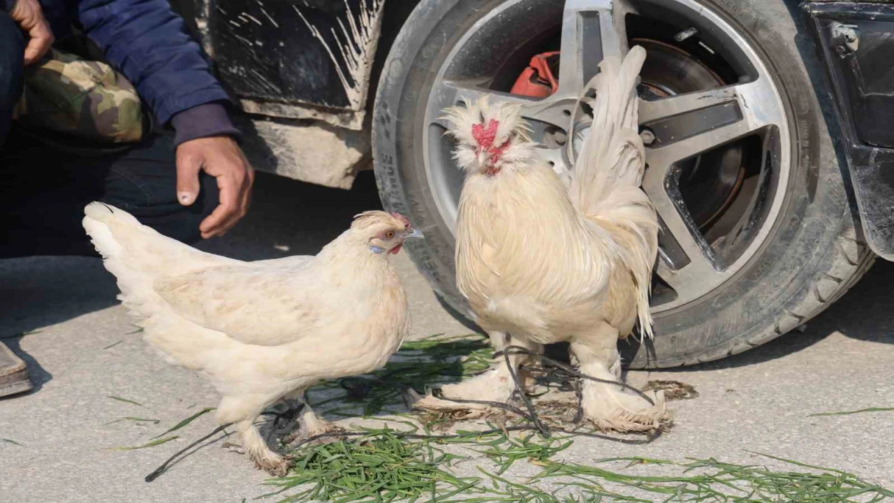 Araba pazarında hem arabasını hem de hayvanlarını satmaya çalışan Mehmet Kuyucu, “Arabayı da ve tavukları satmaya getirdim. Tavuk ve horozu 3 bin TL'ye arabamı da 260 bin TL'ye satıyorum. Bana arabayı mı yoksa tavuklarımı satıyorsun dediklerinde arabayı sattığım zaman tavukları da hediye edeceğim. Buraya geleli ikinci hafta oldu. Bu hafta ilk kez tavukları getirdim. Horoz 3 yıldır ve tavuk 2 yıldır benimle yaşıyorlar. Cinsini bilmiyorum ama horozu ‘yakışıklı' diye aldım besliyorum. Hobi olsun diye birkaç tavuk ve horoz alıp besliyorum. Ben kepçe operatörlüğü yapıyorum. Kepçe operatörlüğünü 18 yaşından beri yapıyorum. Çocuklar geldiğinde hiç yanlarından ayrılmıyorlar. Çocuklar tavukları baya seviyor. Araba pazarına ilk gelişimde tavukları da getirdim. Geçen hafta sadece arabayı getirmiştim ama bu hafta tavukları da getirdim. Hangisinin kısmeti daha iyiyse o satılır. Araba satılmazsa tavukları geri götürüp kümesine bırakırım. Eğer arabayı satarsam tavukları ona hediye ederim. Tavuklar bu pazarda ilk ve tek bende var. Araba pazarına ile tavuk pazarına aynı anda gidemediğim için bende tavuk ile horozu araba pazarına getirdim” dedi.