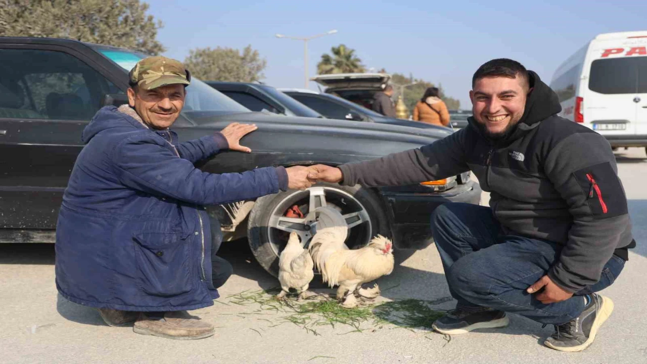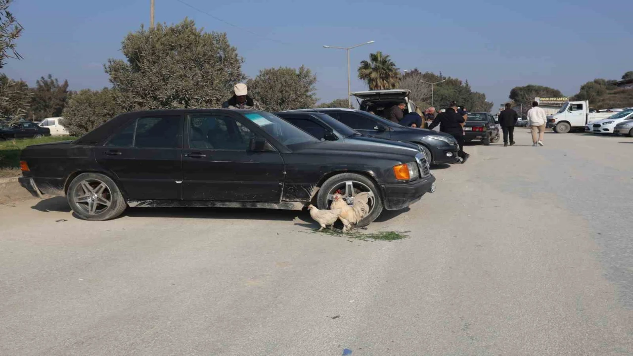 Hatay'ın Antakya ilçesinde yaşayan Mehmet Kuyucu, 1996 model otomobilini satmak için hafta sonları kurulan araba pazarında aracıyla birlikte yerini aldı. Hobi olarak tavuk ve horoz besleyen Kuyucu, araç pazarı ve tavuk pazarının aynı gün olması dolayısıyla horoz ve tavuğunu aracının tekerine bağlayarak araç pazarında satışa çıkardı. Aracın tekerine bağlı tavuk ve horoz görenlerin dikkatini çekerken Kuyucu, , tavuk ile horoza 3 bin TL arabaya ise 260 bin TL'den müşteri bekledi.