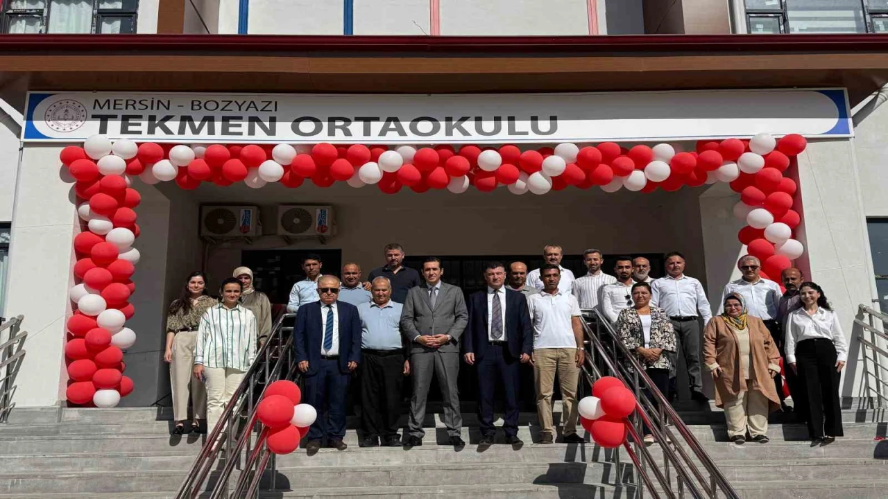 MERSİN'İN BOZYAZI İLÇESİNDE, MİLLİ EĞİTİM BAKANLIĞI TARAFINDAN YÜRÜTÜLEN YIK-YAP PROJESİ KAPSAMINDA YENİDEN İNŞA EDİLEN 16 DERSLİKLİ TEKMEN ORTAOKULUNUN YENİ HİZMET BİNASI, DÜZENLENEN TÖRENLE AÇILDI.