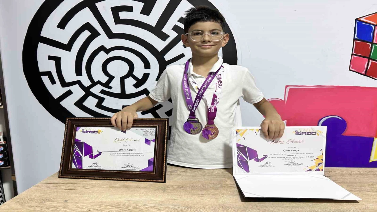 HATAY'IN İSKENDERUN İLÇESİNDE YAŞAYAN 10 YAŞINDAKİ ÜMİT KEÇİK, FEN VE MATEMATİKTE ELDE ETTİĞİ DERECELERLE TÜRKİYE'YE ALTIN, DÜNYAYA İSE BRONZ MADALYA KAZANDIRDI.