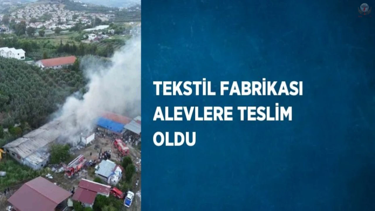 Hatay’da alevlere teslim olan tekstil fabrikasına itfaiye ekiplerinin müdahalesi sürüyor. İşçilerin mesai bitiminde çıkan yangın havadan da görüntülendi.