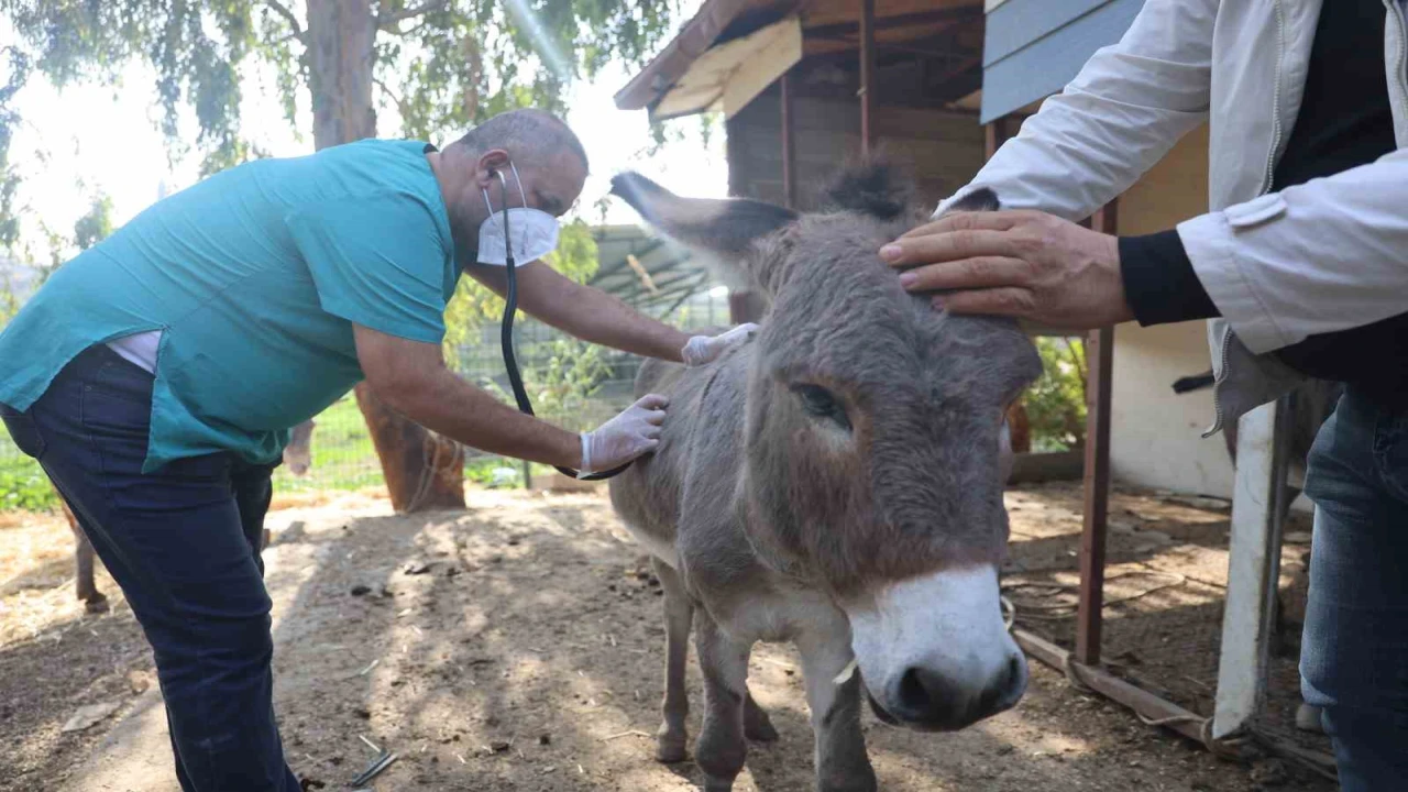 Ekiplerimiz tarafından ivedi bir şekilde Hatay Büyükşehir Belediyesi Hayvan Barınağı'na getirildi. Veteriner hekim tarafından muayenesi yapıldı. Genel olarak sağlık sorunu yok. Burada diğer eşekler de var. Sahada güçten düşmüş eşekleri de topluyoruz. Bu eşekleri ücretsiz şekilde sahiplendiriyoruz.