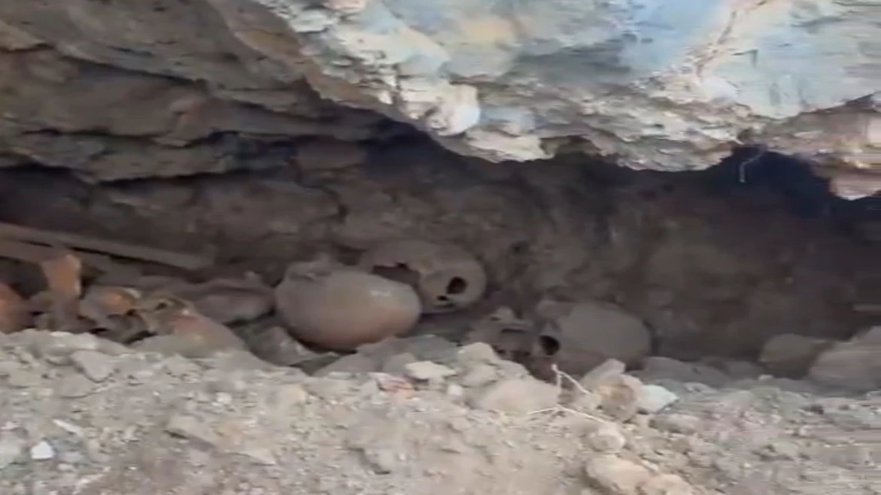Kahramanmaraş’ın Türkoğlu ilçesine bağlı tarihi geçmişi olan bir mahallede temel kazısı sırasında kaldırılan kayanın arkasındaki mağara benzeri bir yerde insan kafatasları ve iskeletleri ortaya çıktı.
