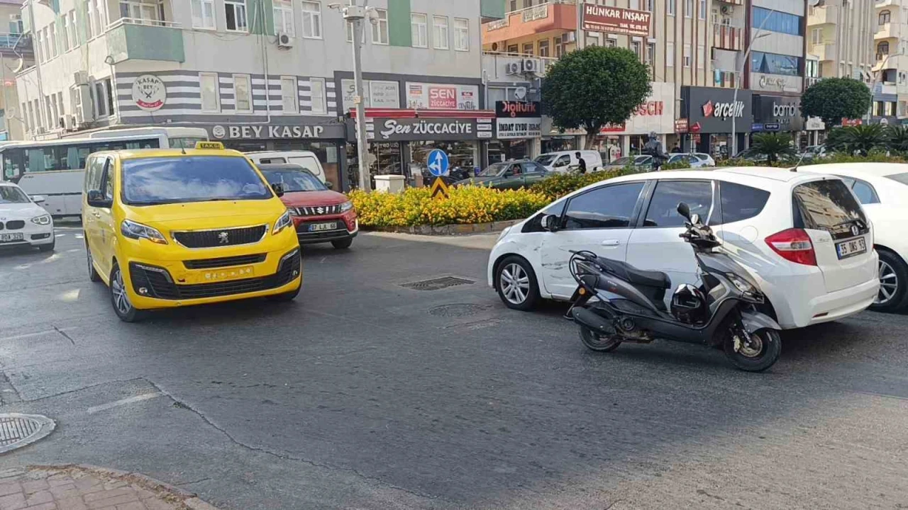 Antalya’nın Manavgat ilçesinde ticari taksi ile çarpışan motosiklet, ardından yol kenarındaki bir otomobile çarptı. Kazada motosiklet sürücüsü yaralanırken, o anlar güvenlik kamerasına yansıdı.