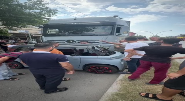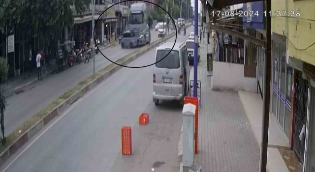 Geçtiğimiz günlerde yaşanan, Dörtyol ilçesi Özerli Mahallesi’nde yaşanmıştı. Cadde üzerinde ilerleyen tır, aynı istikamette seyir halinde olan Citroen marka Ami model mini elektrikli aracı önüne alarak sürüklemeye başlamıştı. Tırın, mini aracı oyuncak araba gibi metrelerce sürüklediği anlar güvenlik kamerasına yansıdı. Kazada yaralanan olmazken, araçlarda hasar oluşmuştu. Mini aracıyla tırın önünde 30 metre sürüklenen Azad Şahin, kaza anını anlattı.