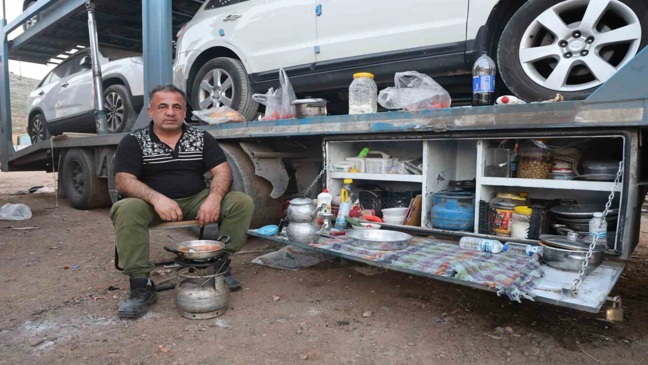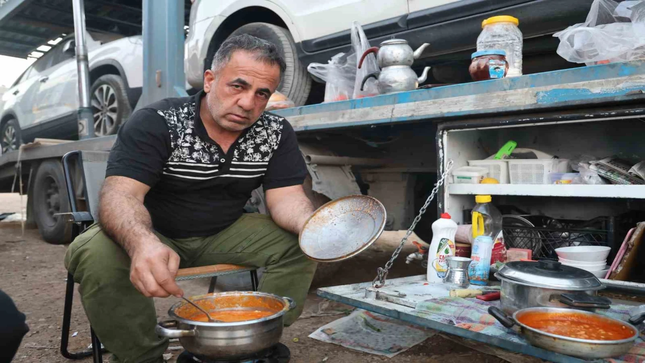 Bölgede tır garajı olmamasından dolayı zorlu şartlarda iftar yaptıklarını ifade eden Alaattin Çevik, "Ben 18 yıldır tır şoförlüğü yapıyorum. Ramazan ayındayız ve iftarımızı çok perişan bir halde açıyoruz. Tuvalet ve banyo yok. Bunlar için çarşıya gidip gelmek çok zor oluyor. Bazen çekicileri çıkarıyoruz bazen de tırlarla gidiyoruz. Bazen de gidemediğimiz için elimizdeki imkanlarla iftarımızı açıyoruz. Bu Ramazan ayında gönül rahatlığıyla bir gün kafamıza göre iftar açamadık. İftardan ziyade normal günlerde zor yaşıyoruz ve sosyal hayat yok. Mecburi yemek yapıp iftar açıyoruz. Burada güzel bir lokanta olsaydı kimse yemek yapmazdı. Bu Ramazan ayında tozun dumanın için yemek yapmazdık. Bir lokantaya tırla gitmemiz veya yürüyerek gitmek gerekiyor ama o da zor oluyor. Kendi imkanlarımızla tırımızın sandıklarında yemek yapıyoruz. Ben iftarımı açmışım. Canım su çekiyor ama su yok. Sıcak çeşme suları içiyoruz. Elimizdeki 5 domates ve biberle et sote yaptık. En azından tenceremizde yemek pişiyor dedik" şeklinde konuştu.