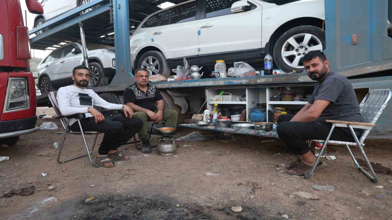 Ramazan ayını yollarda direksiyon sallayarak geçirdiğini söyleyen ve tırın sandığında iftarını yaptığını söyleyen tır şoförü İbrahim Kara, "Bu Ramazan ayında da yollarda olmaya devam ediyoruz. Buradaki sıkıntımız; sahada toz var, dua ve namaz kılacak yeriniz yok ve yemek yiyebileceğimiz bir yer yok. Bu konuda yetkililer bize yardımcı olsun. Burada yemek yiyebileceğimiz bir yer olmadığı için kendi imkanlarımızla yemek yapıyoruz. Bazen zor şartlar altında suyumuz olmadığımız zaman tırla 7 kilometre gidiyoruz. Bu akşam burada patates kızartması, biber kızartması, çorba ve ayranımız vardı. 5 gün burada sırada bekliyoruz. Burada yemek yiyebileceğimiz bir yer olmadığı için iftarı ve sahuru kendi imkanlarımızla yapıyoruz" dedi.